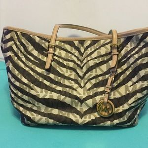 Hello what's the width of your MK bag? Is the top trim dirty and handles
