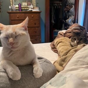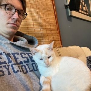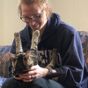 Just a dude and his cats. Cats not included in purchase though you may find a hair or two.