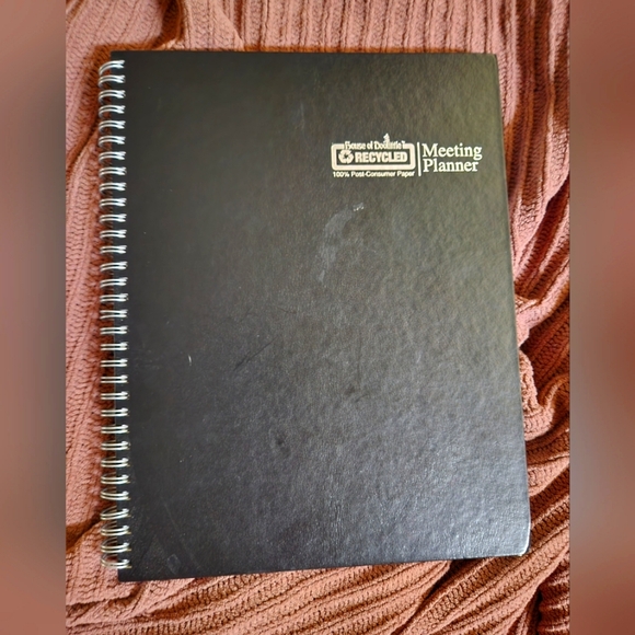 Blank meeting notes notebook with lots of blank pages to use as you see fit. There is a lighter spot on the front (see photos) that I can't buff out but could be covered with a sticker!