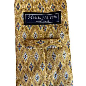 Meeting Street Mens Silk Necktie Gold Geometric Diamond Retro Corpcore Dad Gift