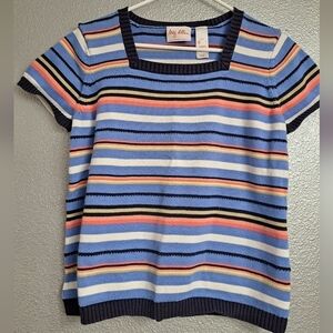 very good condition, short sleeve square neck, ribbed neck, sleeve & waistband, 100% cotton, pit to pit 19" sleeve 7" length 22" 0014