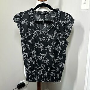 Super cute Meg & Margot Black sheer top with shirred bottom. Size Medium. Worn once. Like new.