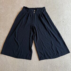 Meg & Margot Pants Black Wide Leg Ankle Boho Pull On Minimalist Travel Lagenlook Flowy High Waist Size XL #RO25562