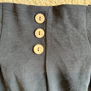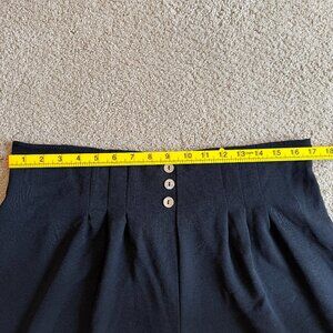 Elastic waist w/3 non-working buttons. pull on, wide leg, ankle crop, boho, flowy, lightweight, high waist, stretchy, loose, vacation, travel, resort minimalist, lagenlook