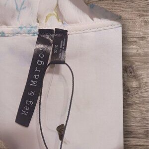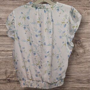 Meg & Margot Womens Floral Blouse Size Medium White & Blue