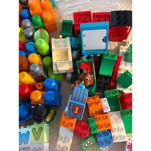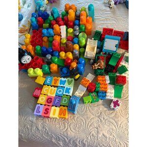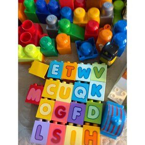 Mega Bloks 140 Colorful Building Blocks Lot W/ Alphabet Letters & Train Cars