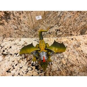 Mega Bloks Knight dragon?( name) works . Green Orange horns silver chest plate lights up .(push in tiny holes on chest, lights stay on few seconds at a time) This is a replacement part and not complete. AS IS.