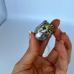 Mega Ring 925 with enamel butterfly and jeweled lizard size 6