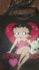 This amazing mega size heart shape shoulder tote is perfect for your next outing. This faux black leather bag has a cute satin print of Betty in her many gorgeous outfits and poses. The front is adorn with her image while inside has a couple of small side pockets. This bag is as wide as a case of bottled water and is currently sold out online.