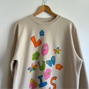 Beautiful sweater by Mega Yacht with the Louis Vuitton hippie-inspired flower power graphic design. Limited edition by LA streetwear brand Mega Yacht.