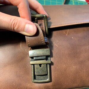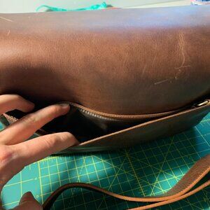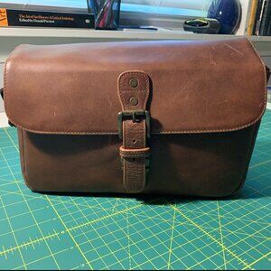 This beautiful camera bag is in great condition. The storage compartment is pristine with no dirt, stains, discoloration, or signs of use on the lining. It has the two original padded dividers as well as two additional yellow ones. All are removable and can be placed anywhere in the compartment. This is a leather bag so it does have some scuffs--see photos. There are no cuts, staines, discoloration, or other signs of wear however. The buckles and carrying strap are in good condition as well. The interior is space is *approximately* 10.5" x 6" x 4"--see website description below for more measurements and compatibilities.