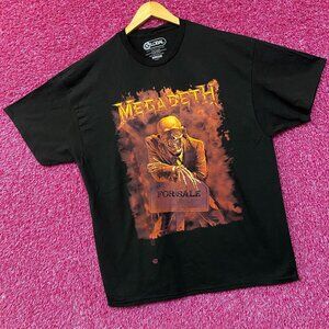 Megadeth Peace Sells But Who's Buying Album Cover T-Shirt 2XL. Generally measures 25 inches pit to pit and 32 inches long. Amazing graphic design shirt with iconic mascot Vic Rattlehead leaning on a for sale sign, perfect for Megadeth fans. New never worn and has distressing on the bottom.
