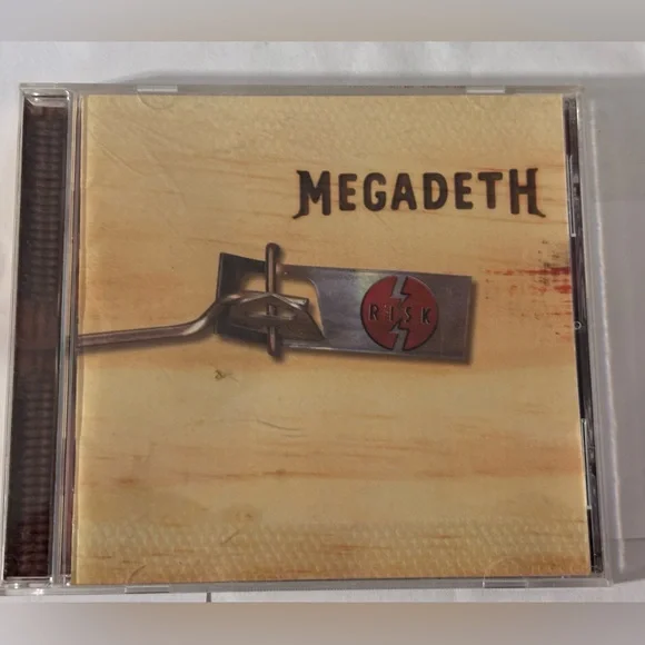 Megadeth Risk CD with a beige cover and bold black lettering.