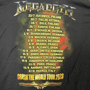 This Megadeth 2023 tour T-shirt is a must-have for any fan. Size XL, it measures 22 1/2 inches pit to pit and 31 inches in length.