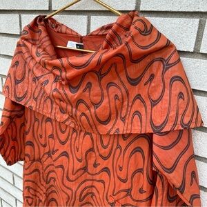 Three quarter sleeves. Material is a lightweight nylon. Pockets at hips. Size S. Excellent used condition.