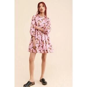 Megan Crosby Babydoll Dress Pink Gingham Cowboy Boots Print Size Large