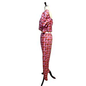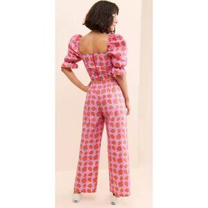 Megan Crosby Sophie Strawberry Print Puff Sleeve Crop Top & Pants Set | Organic