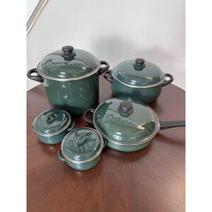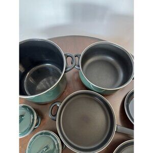 Megaware Enamel Green Pot Pan Lid 10pc Set Spain MINT