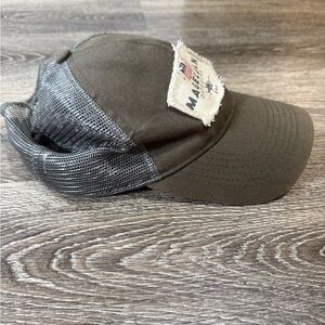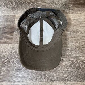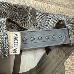 Olive green mesh cap by Magellan Outdoors. Adjustable back strap. Breathable design.