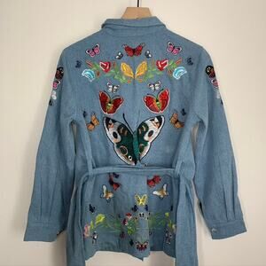 Meghan Fabulous Boheme Butterfly Bomb Jacket Denim Womens Small