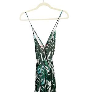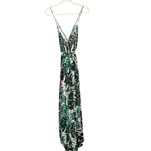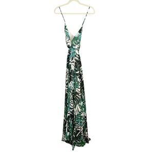 meghan la, tropical dress, resort wear, palm print, green maxi dress, vacation outfit, summer gown, beach wedding guest, evening resort dress, island wear, B4