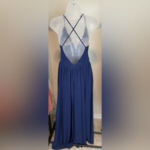 Meghan Los Angeles Women’s Maxi Dress Medium Blue Cross Back Formal Cocktail