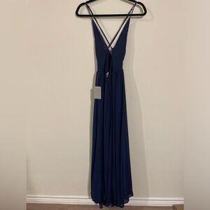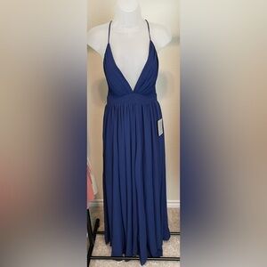 Meghan Los Angeles Longline Blue Cross Back Formal Flowy Maxi Dress