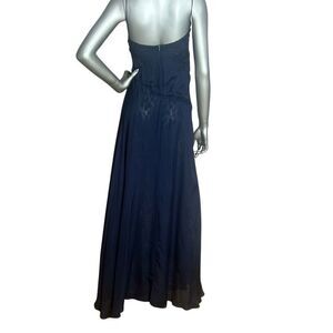 Meghan Silk Lace-Trim Dark Blue Gown Dress 4 (024)