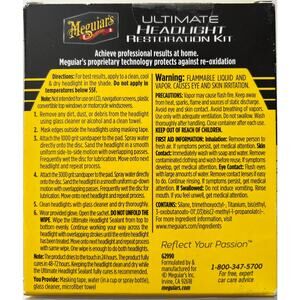 Restore your headlights to their original clarity with Meguiar's Ultimate Headlight Restoration Kit! This kit includes everything you need to remove oxidation, cloudiness, and scratches from your headlights, leaving them looking like new.