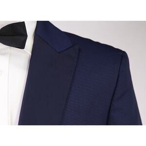 Mehmet Emin Teke Navy Blue Woven Peak Lapel Slim Fit Tuxedo Dinner Jacket 46R