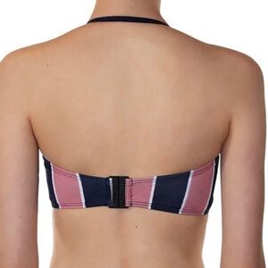 Mei L’ange Women's Micah Striped Blue Pink Bandeau Bikini Top Size Small New