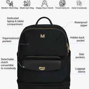 This sleek, multifunctional bag designed with a detachable clutch helps you organize and carry everything you need for your daily life, no matter where the day takes you. Whether it's your work laptop backpack, gym bag, happy hour clutch, travel bag, or daily crossbody, this backpack has your back - literally.