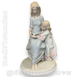 This charming Vintage Meico Inc. Porcelain Figurine captures a heartwarming moment of a mother reading to her young daughter. Glazed in delicate pastel colors, the craftsmanship resembles the quality found in Lladro figurines. The underside of the figurine holds a special inscription from a grandmother to her granddaughter, dated 1994.