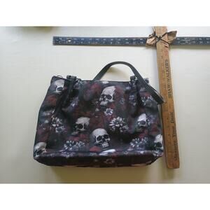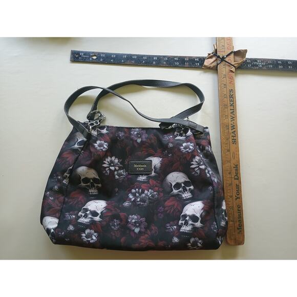 Add a touch of gothic flair to your wardrobe with this Meiduola YYDS Floral Skull Shoulder Bag! The striking black background is beautifully contrasted with vibrant skull and floral designs in purple and red hues, embodying a unique Gothic Punk aesthetic.