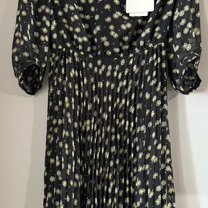 This elegant black floral midi dress features a sophisticated design perfect for any occasion. The delicate floral pattern adds a touch of charm. Ideal for both casual and formal events.