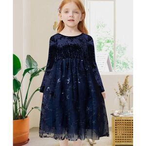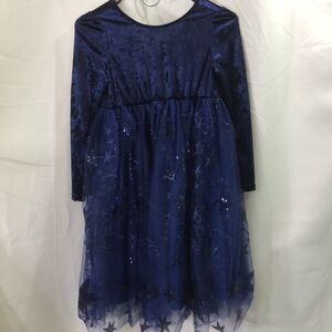 Meilleur Moment Girls Dress Navy Velvet Lace Star Tulle Bow Back Size 12 NWOT