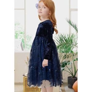 This darling Meilleur Moment girls’ dress is perfect for holiday photos, parties, or special occasions! ✨ Made with a soft navy crushed velvet bodice and a starry tulle overlay skirt, it has just the right amount of sparkle. A bow detail at the back adds an extra touch of charm.