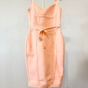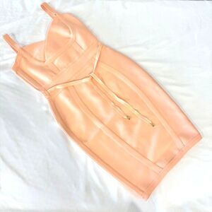 Meilun Women Coral Rayon Belt Detail Bandage Bodycon Sext Party Dress Size Small