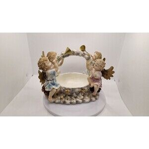 Meissen-Style 4 Cherub Basket Candy Jewelry Potpourri Centerpiece Beautiful