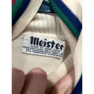 Meister Women's Size 34 Knit Wool Turtleneck Sweater Cream Stripes Sleeve