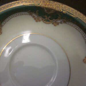Hand painted green & gold Meito China. Stamped made in Occupied Japan.