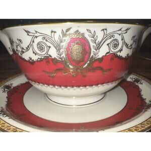 Meito MANDARIN Gravy Boat & Attached Underplate Red Gold Excellent Pristine!