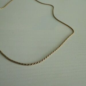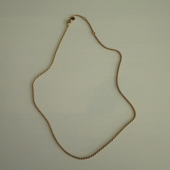 Gold Vermeil Rope Chain from Mejuri. I’ve had it for about a year but have only worn it a few times so there is nothing wrong with it.