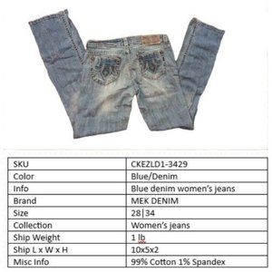 Mek Dnm Women's Blue Adjustable Waist Straight Leg Denim Jeans Size 28/34