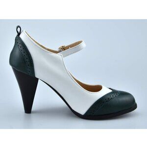 Mekerake Women’s Dark Green & White Mary Jane High Heel Pumps – Size 10.5