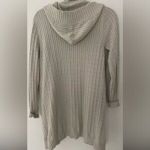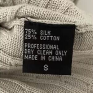 Elevate your wardrobe with this stylish Mel and Lisa Hooded Sweater Set. This set includes a coat and sleeveless shell, both made from a luxurious blend of 75% silk and 25% cotton. The classic cable-knit pattern and beige color make this set perfect for any occasion, whether it's a casual day out or a business meeting.