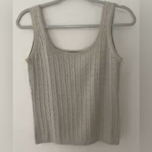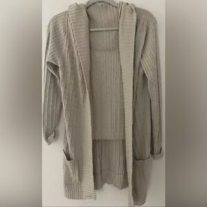 Mel And Lisa Sweater Set Size Large Coat And Sleeveless Shell Khaki Silk/Cotton
