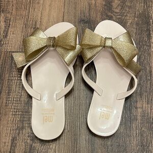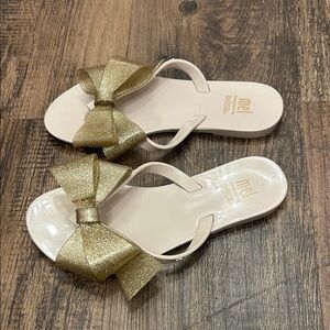 Mel, Dreamed by Melissa Cream Sandals with Gold Bow harmonic bow III