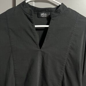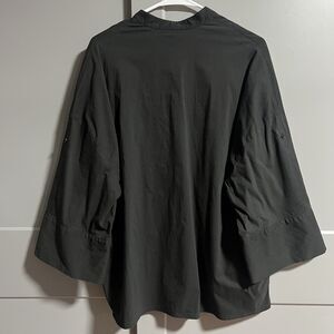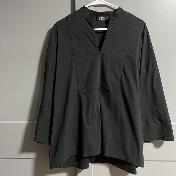 Mela Purdie Women Popover V-Neck Wide Rolled Sleeve Oversize Tunic Black 3XL