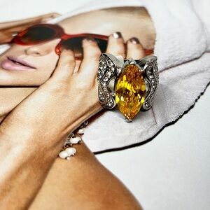 Mela Yellow Stone Fashion Cocktail Statement Ring